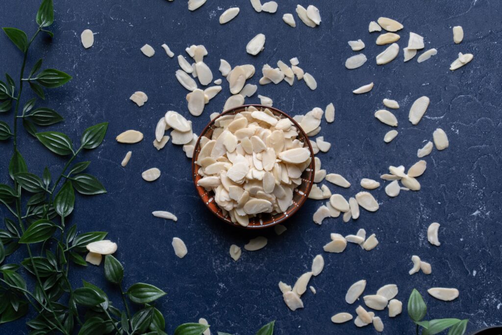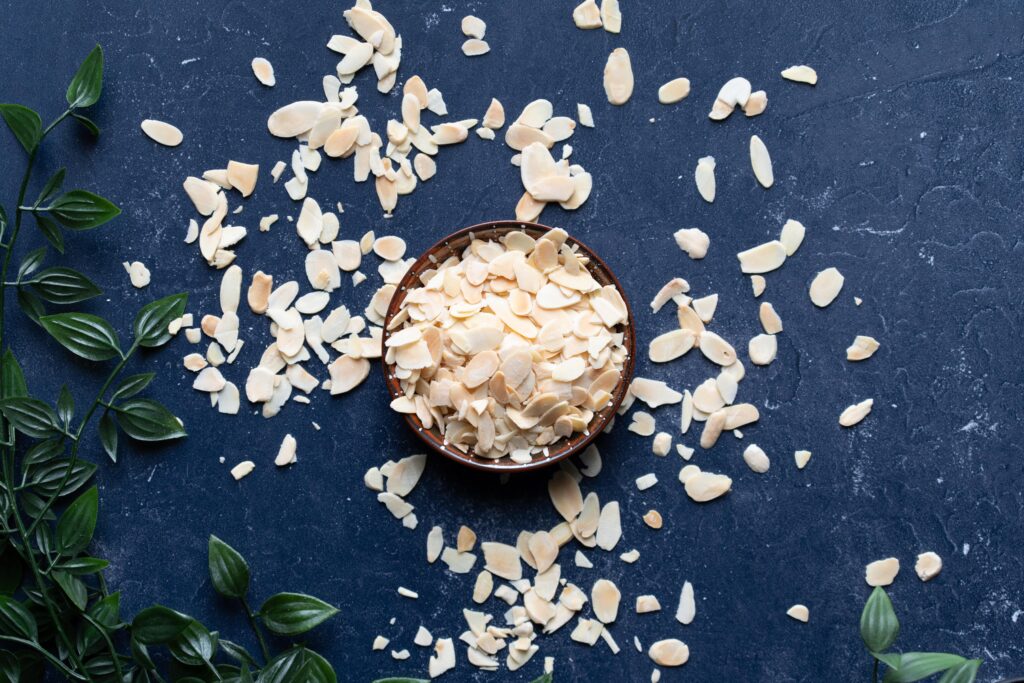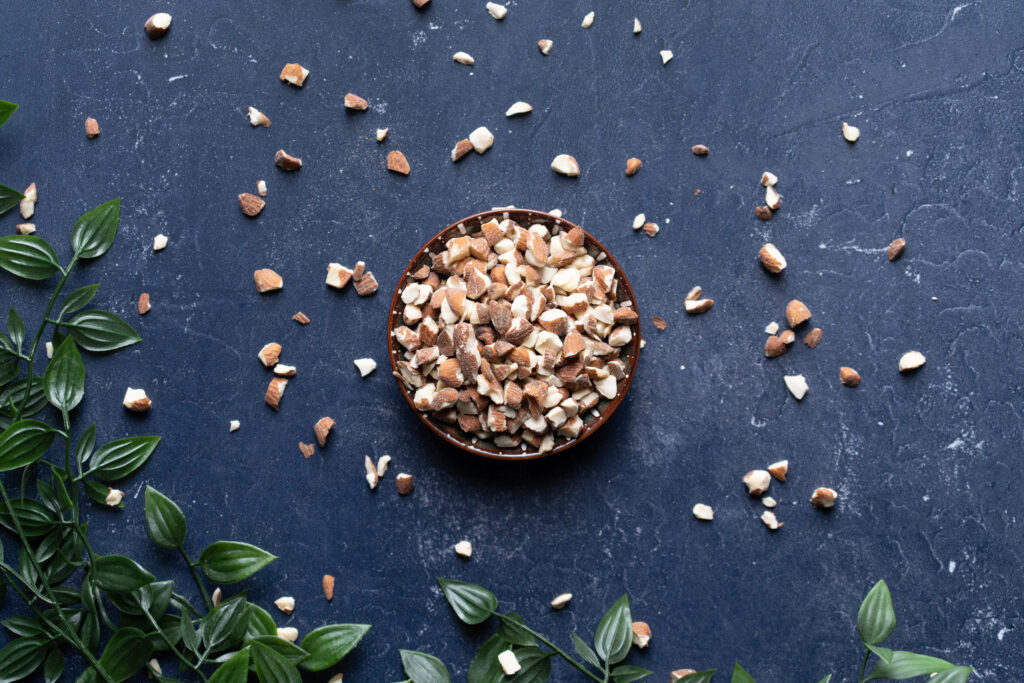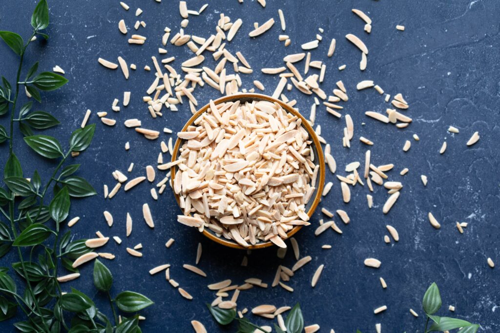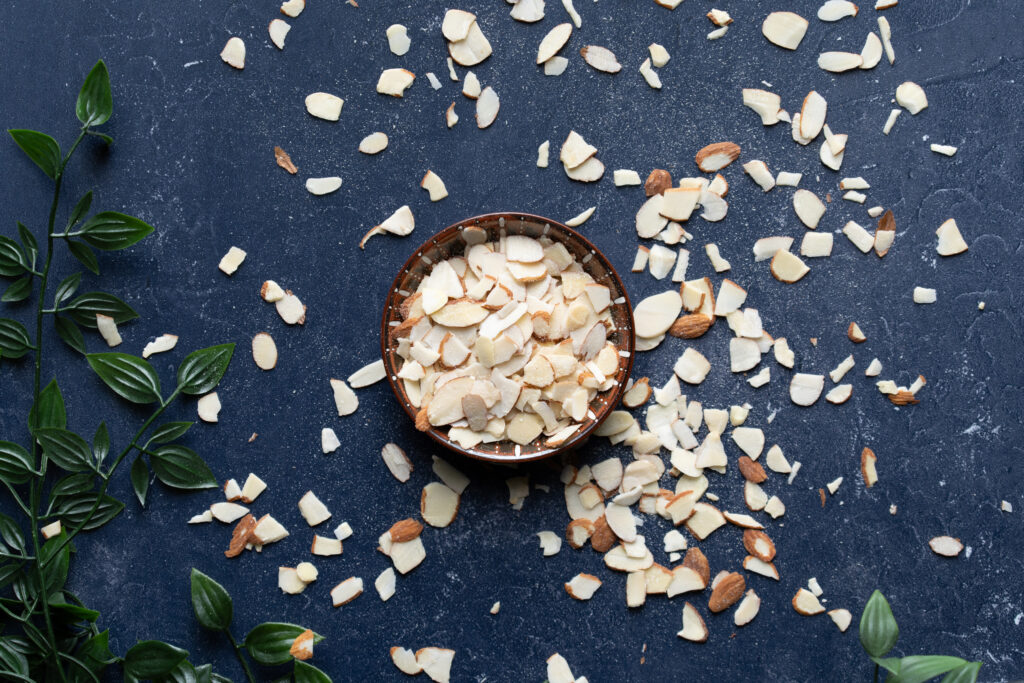 Blanched slivered almonds are skinless almonds that are sliced into strips of different sizes and lengths.